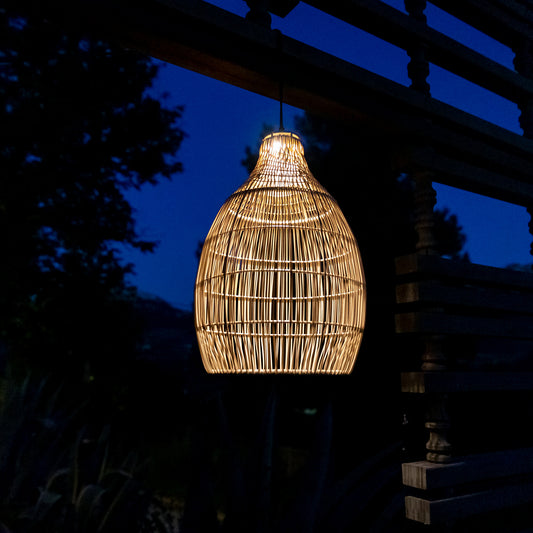 Suspension solaire bohème naturel style vannerie tressée LED blanc chaud HOLIDAY H42cm