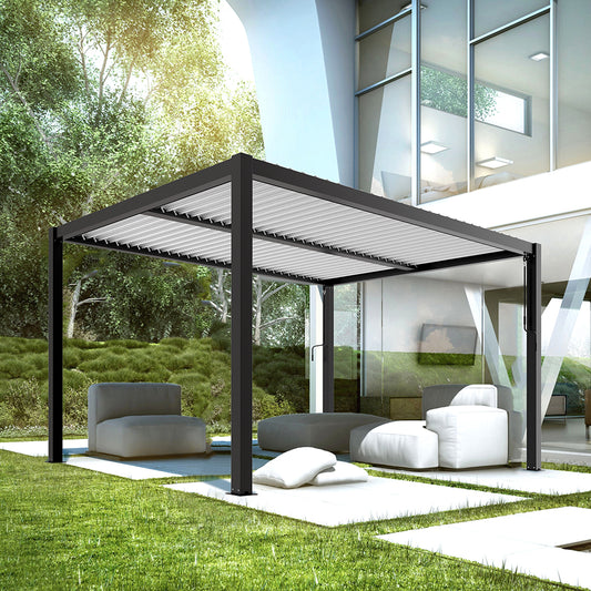 Profitez de chaque saison en toute tranquillité grâce à nos pergolas bioclimatiques innovantes. Réglez l'intensité de la lumière et la température à votre convenance, tout en étant protégé des intempéries. Détendez-vous dans un espace extérieur unique et confortable.