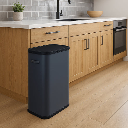 Er ist die perfekte Alternative zu automatischen Abfalleimern und Treteimern: Ein einfacher Druck auf die Oberseite des Deckels genügt, um einen Mechanismus zu aktivieren, der diesen anhebt. Auch das Schließen des Deckels ist ein Kinderspiel, denn Sie müssen ihn nur nach unten drücken, bis Sie die Verriegelung in der geschlossenen Position „klicken“ hören.