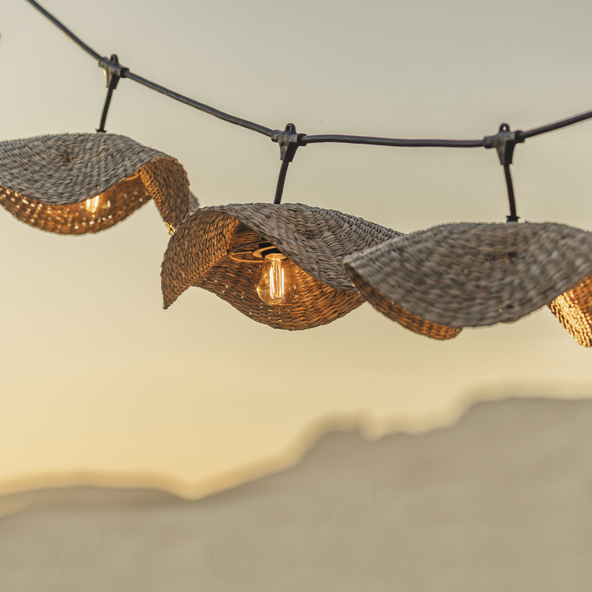 Guirlande lumineuse raccordable d'extérieur avec abat-jour en herbe marine style bohème 7 ampoules à filament douille E27 LED blanc chaud MOLLY LIGHT 6m