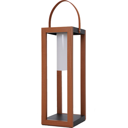 Lanterne solaire décorative LED blanc chaud CHENNAI TALL en bois teck massif H50cm