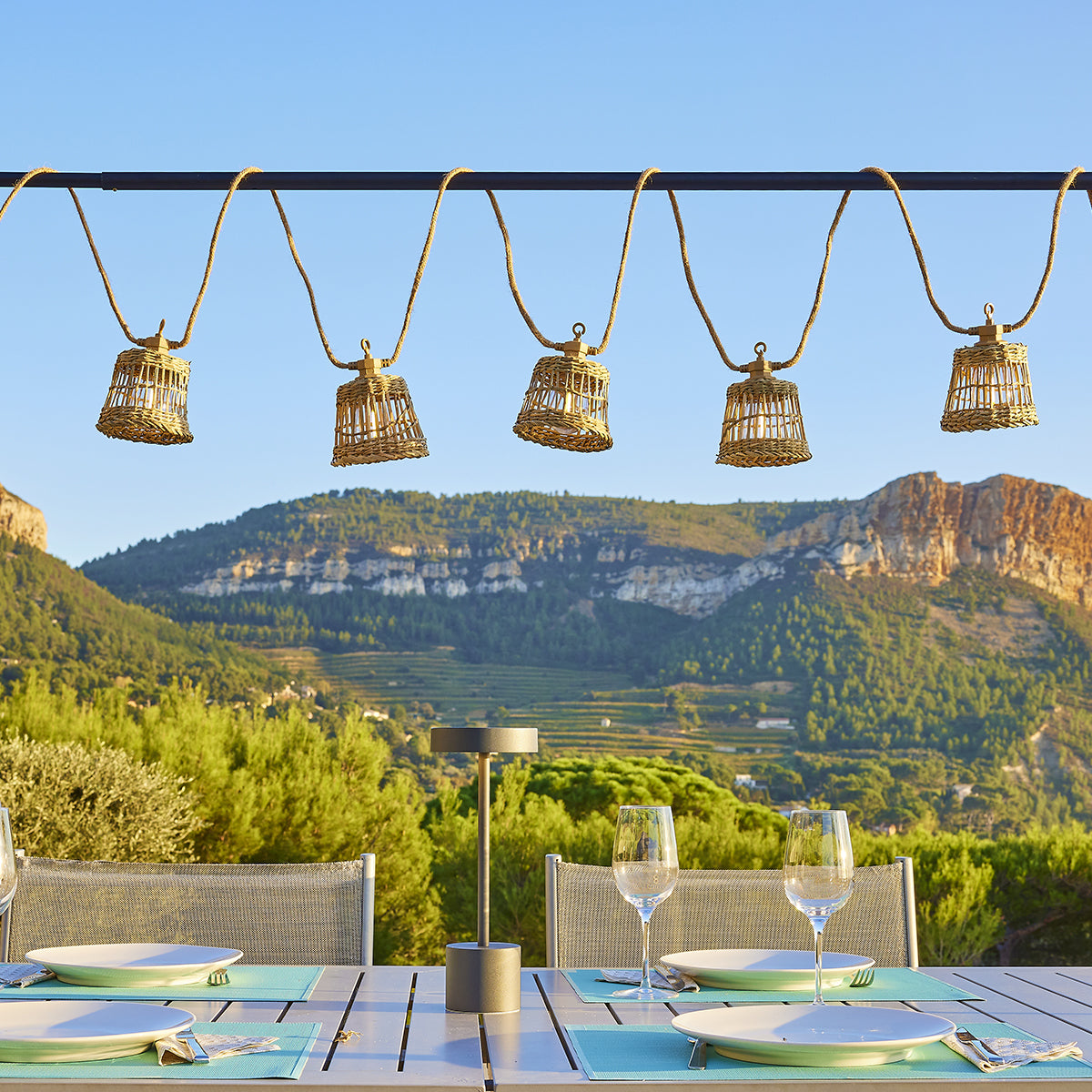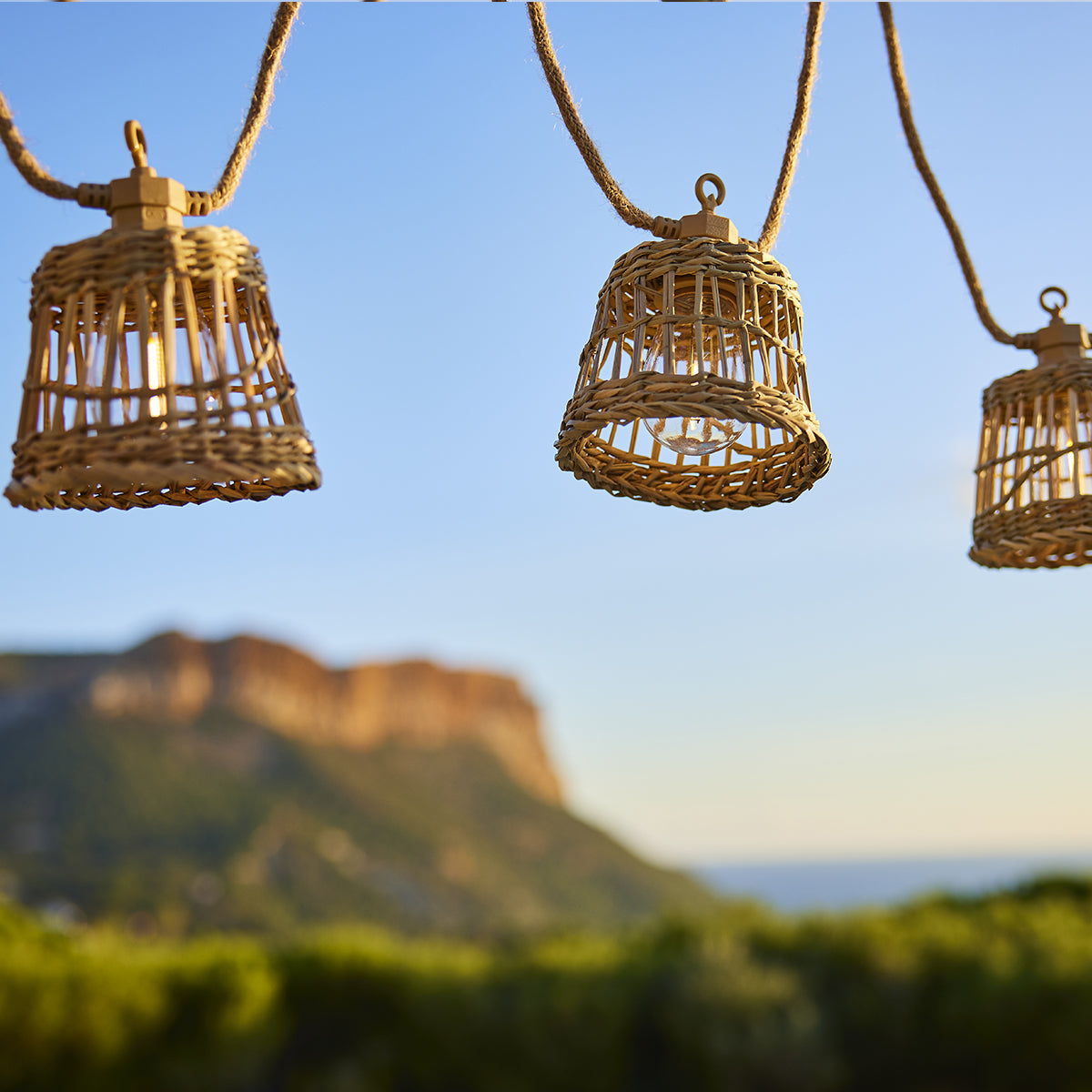 - Guirlande LED Hybride : La guirlande Samoa Light Hybrid crée une charmante ambiance pour embellir votre jardin. Avec ses 10 abat-jour en rotin beige, elle vous fera voyager le temps d'une soirée. Son éclairage blanc chaud et son design naturel contribuent à instaurer une ambiance paisible et calme. C'est l'accessoire parfait pour une soirée détente sur la terrasse.