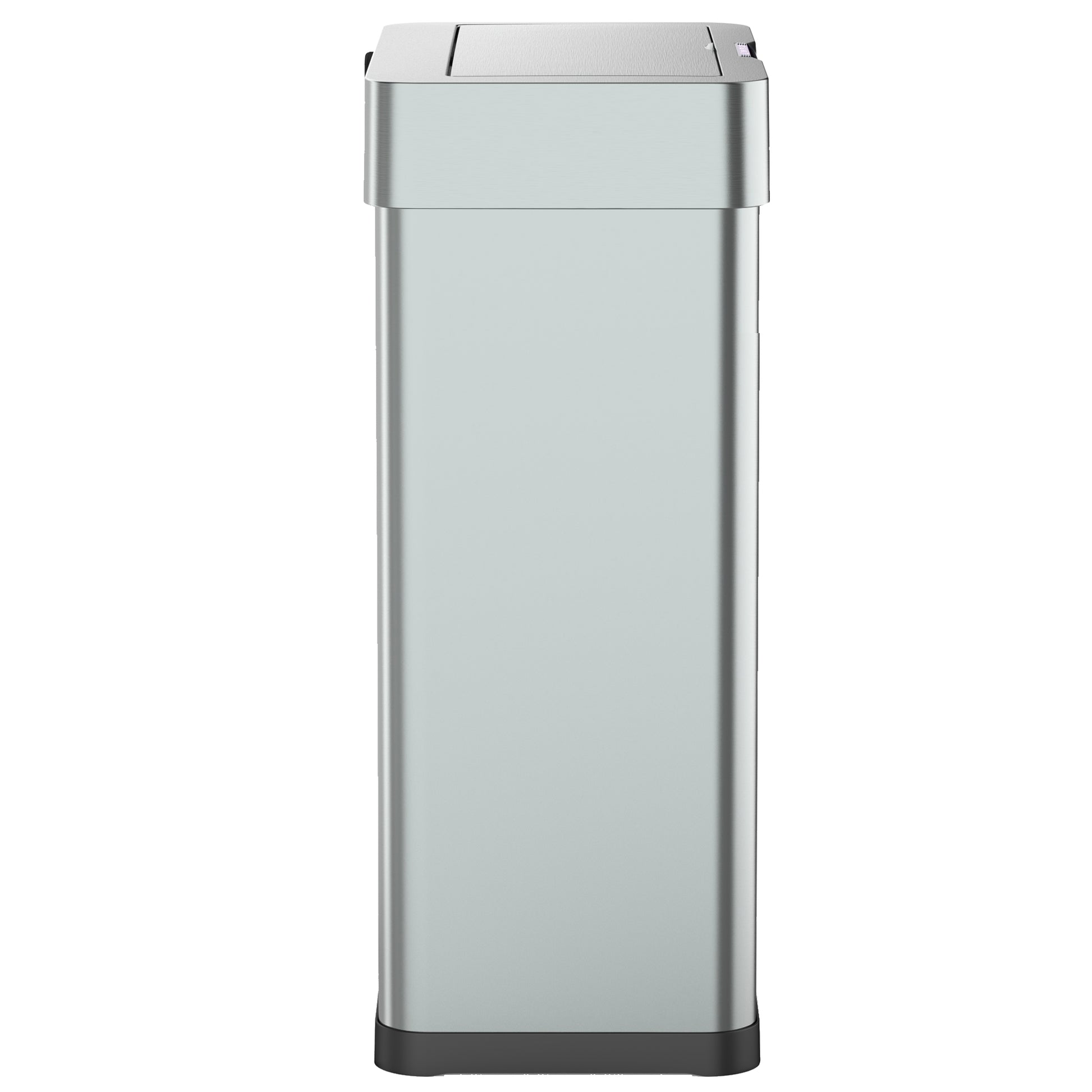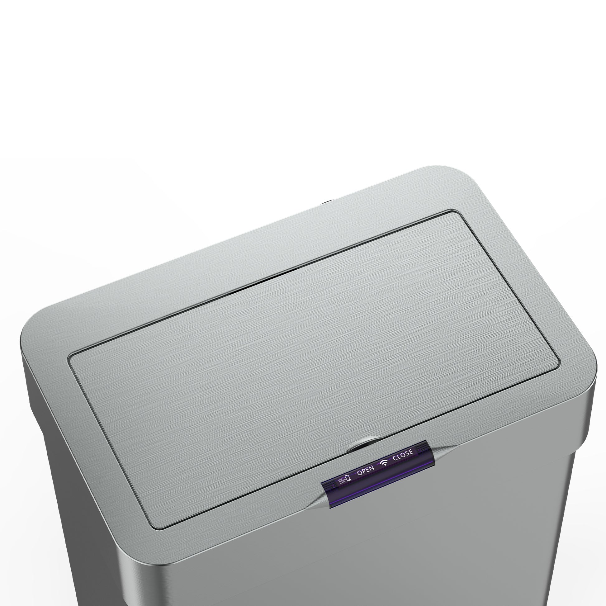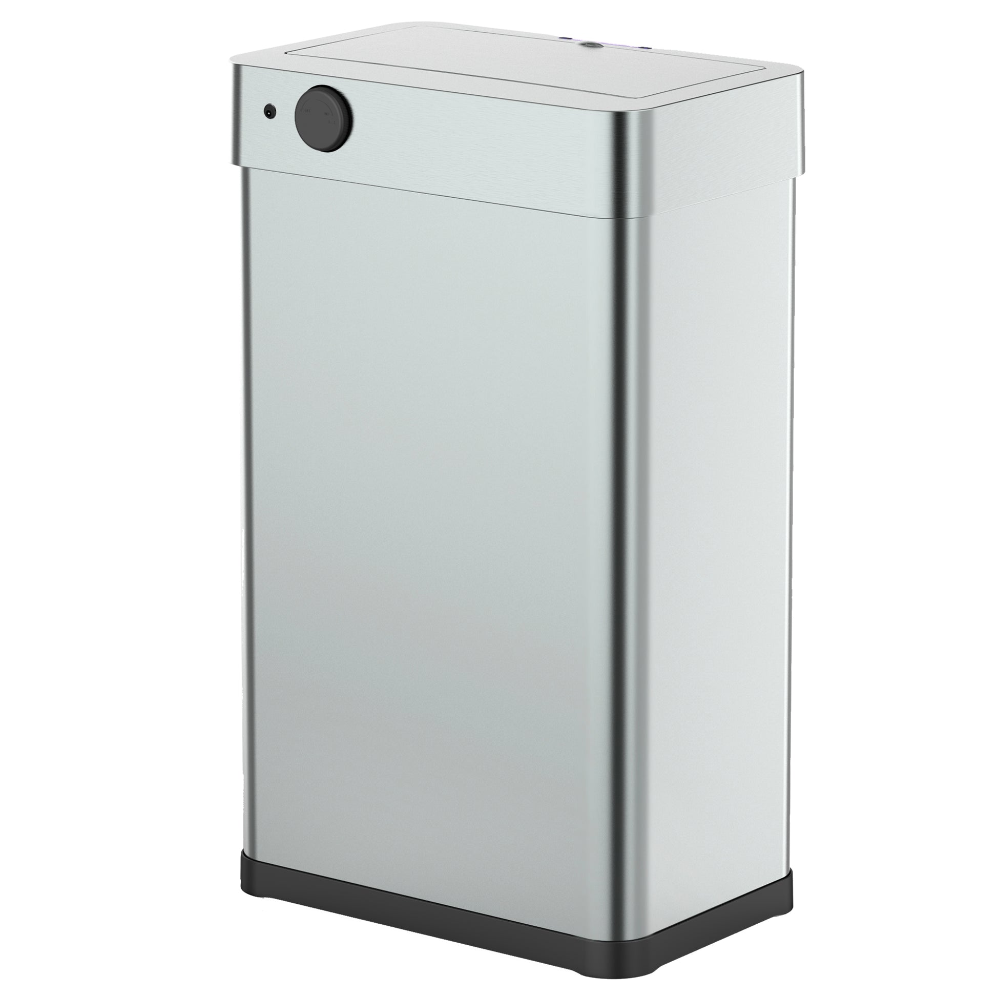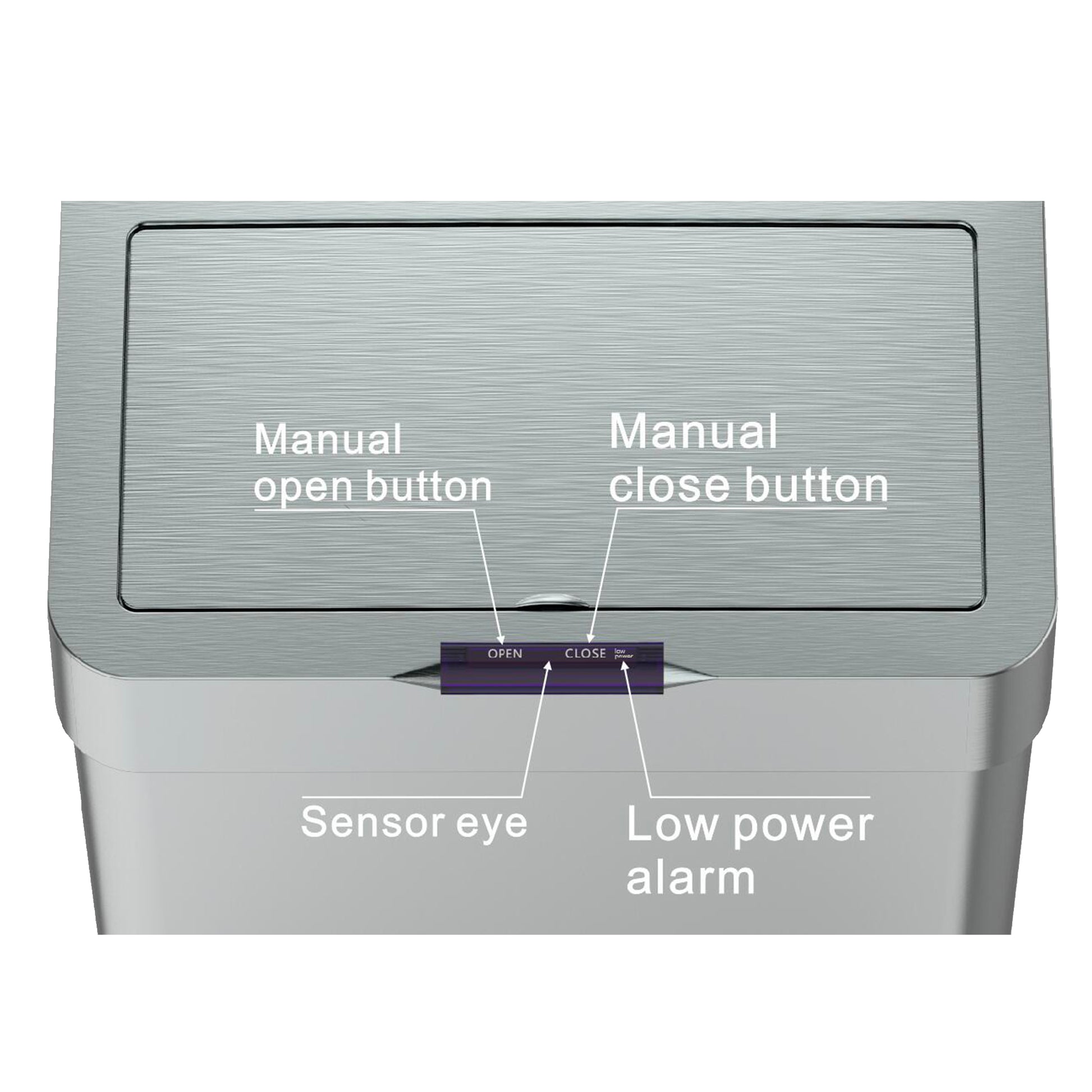 La poubelle automatique DAYTONA 70L de Kitchen Move combine design contemporain et confort d’utilisation. Avec son corps en acier inoxydable finition brossée et son couvercle en ABS couleur inox, elle s’intègre harmonieusement dans une cuisine spacieuse, un bureau ou une salle commune. Son capteur infrarouge détecte les mouvements à environ 15 cm pour une ouverture automatique sans contact, idéale pour un usage hygiénique au quotidien. Sa capacité de 70 litres convient parfaitement aux familles nombreuses et aux lieux de passage. Cette poubelle fonctionne avec 4 piles C (LR14, non incluses) ou via port USB-C (câble non fourni). Équipée d’un cerclage papillon pour maintenir fermement le sac poubelle et d’un anneau de protection au sol, elle assure stabilité et propreté. Fermeture silencieuse, surface anti-traces et entretien facile complètent ce modèle élégant. Dimensions : 41,4 × 27,8 × 69 cm.