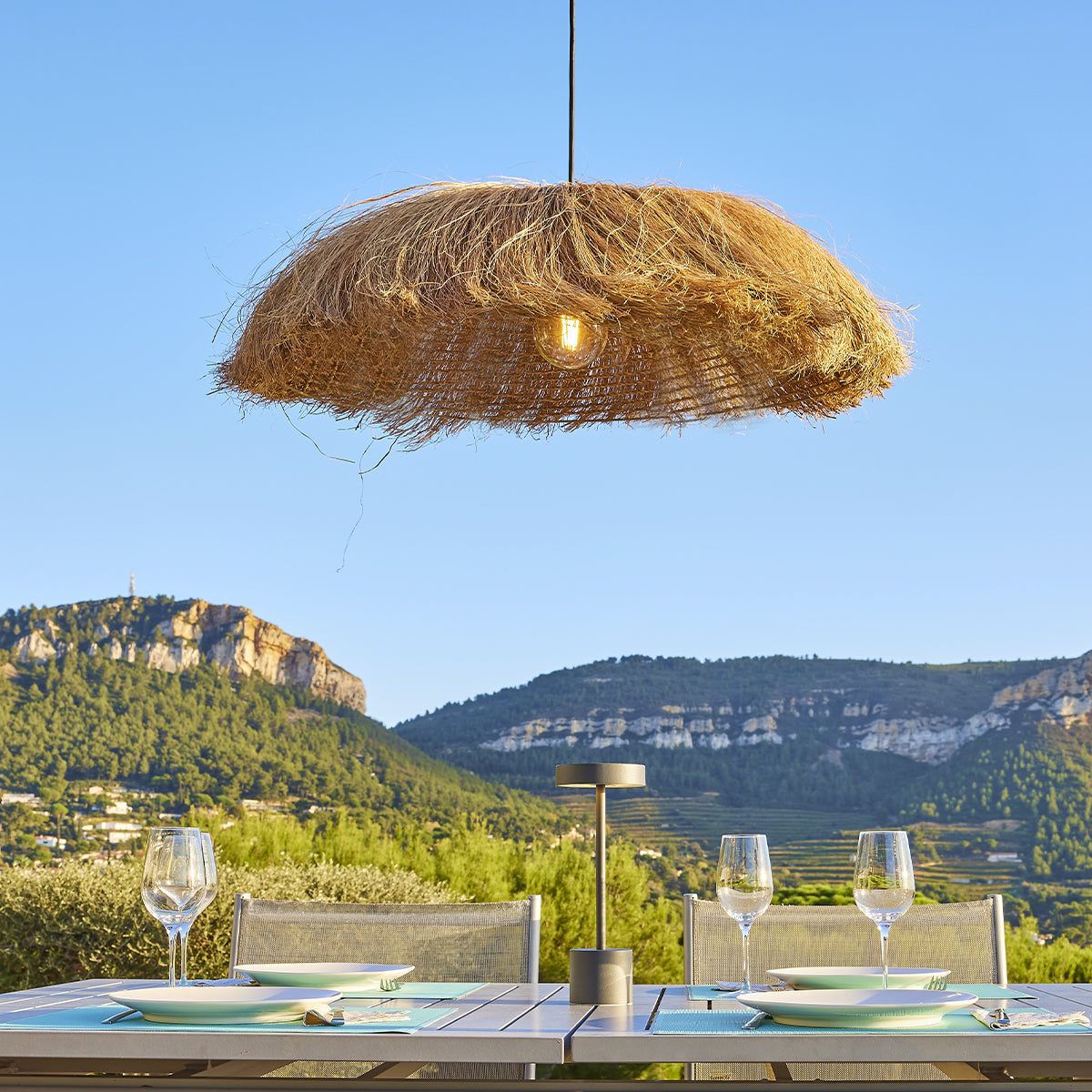 OPTIONS D'ÉCLAIRAGES : Après avoir commandé votre abat-jour, vous pouvez sélectionner l'option d'éclairage qui vous convient parmi nos trois choix : le câble extérieur ENNA E27 (ampoule non fournie, 25W max), disponible en noir ou en corde ; le câble hybride ENNA SOLAR (fonctionne à la fois sur batterie solaire et secteur) avec ampoule intégrée (80 lumens) ; ou la solution nomade avec notre ampoule rechargeable LYS, autonome, accompagnée de sa corde.
