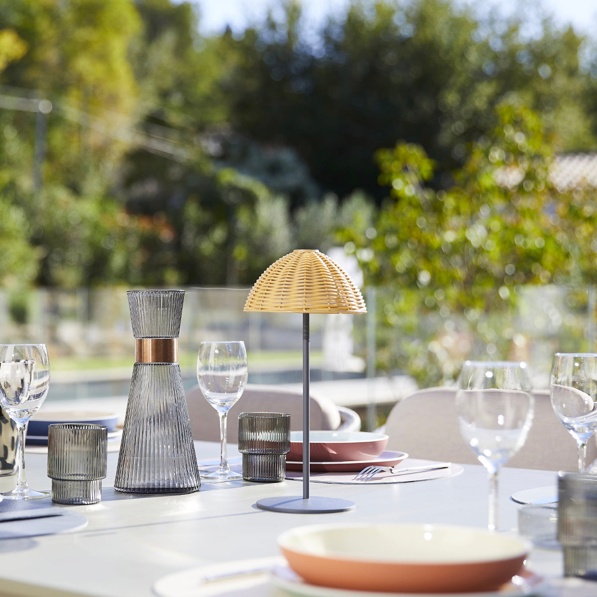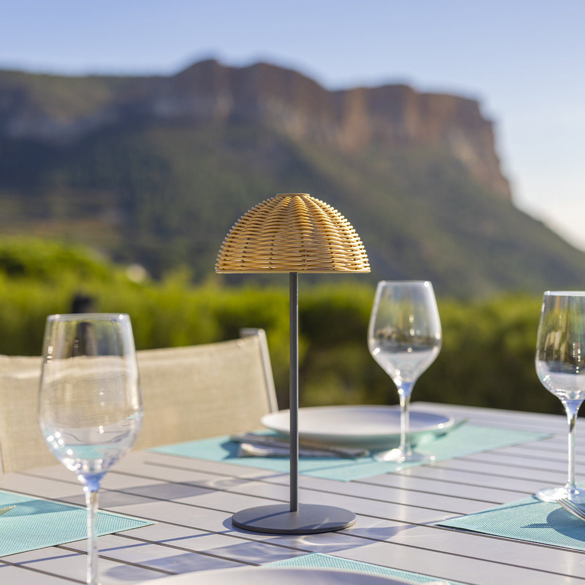 Lampe de table sans fil polyrotin blanc dimmable FAROE H30cm