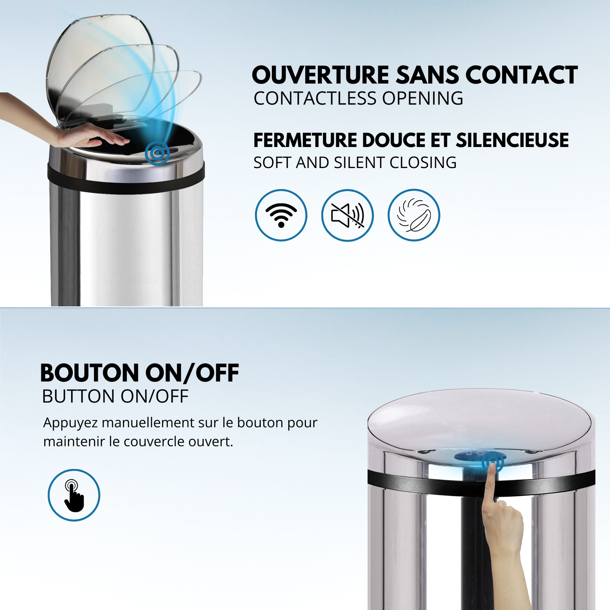 - Round automatic kitchen bin with bucket Capacity 50L ARTIC model in stainless steel Dimension: ∅31xH85cm Weight: 4.1kg Mirror polished stainless steel finish. New more resistant cover and with low battery indicator.