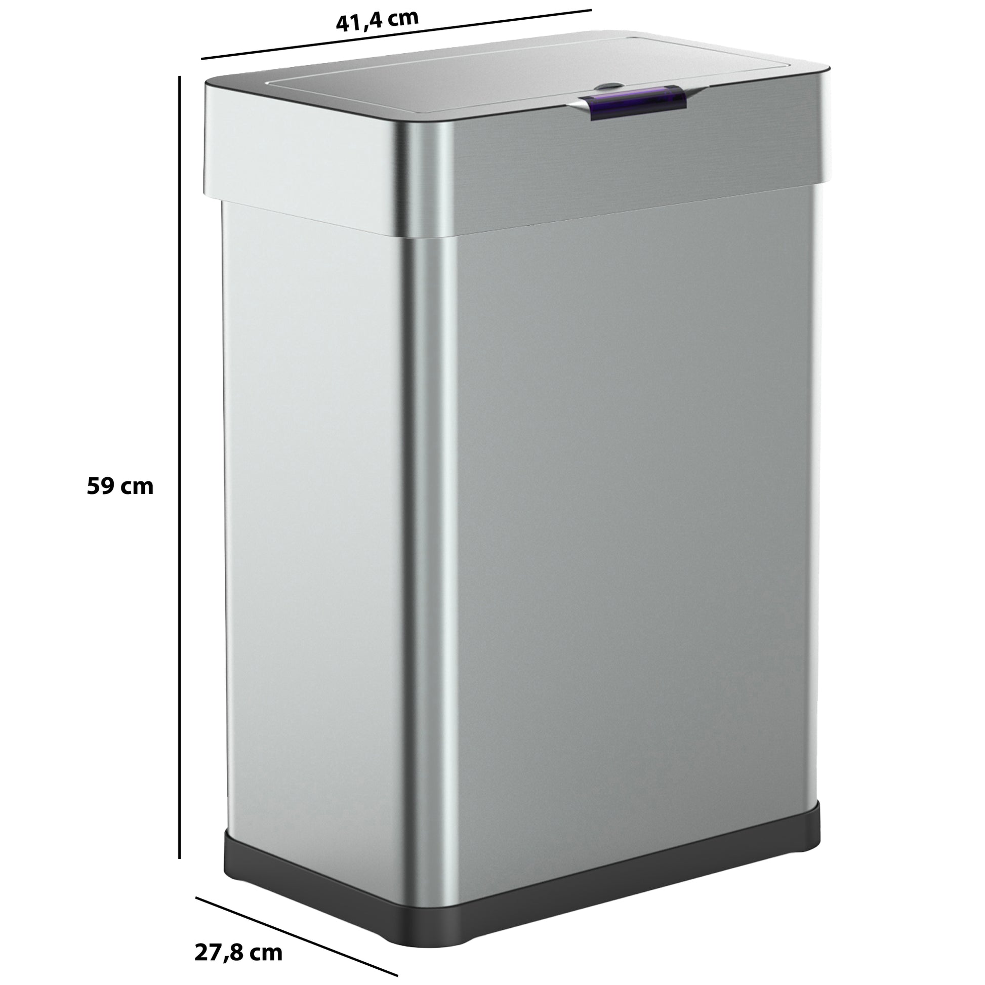 - Rectangular automatic kitchen bin with strapping Capacity 60L model DAYTONA in stainless steel Brushed stainless steel finish Dimension: 41x26xH56cm Weight: 4kg