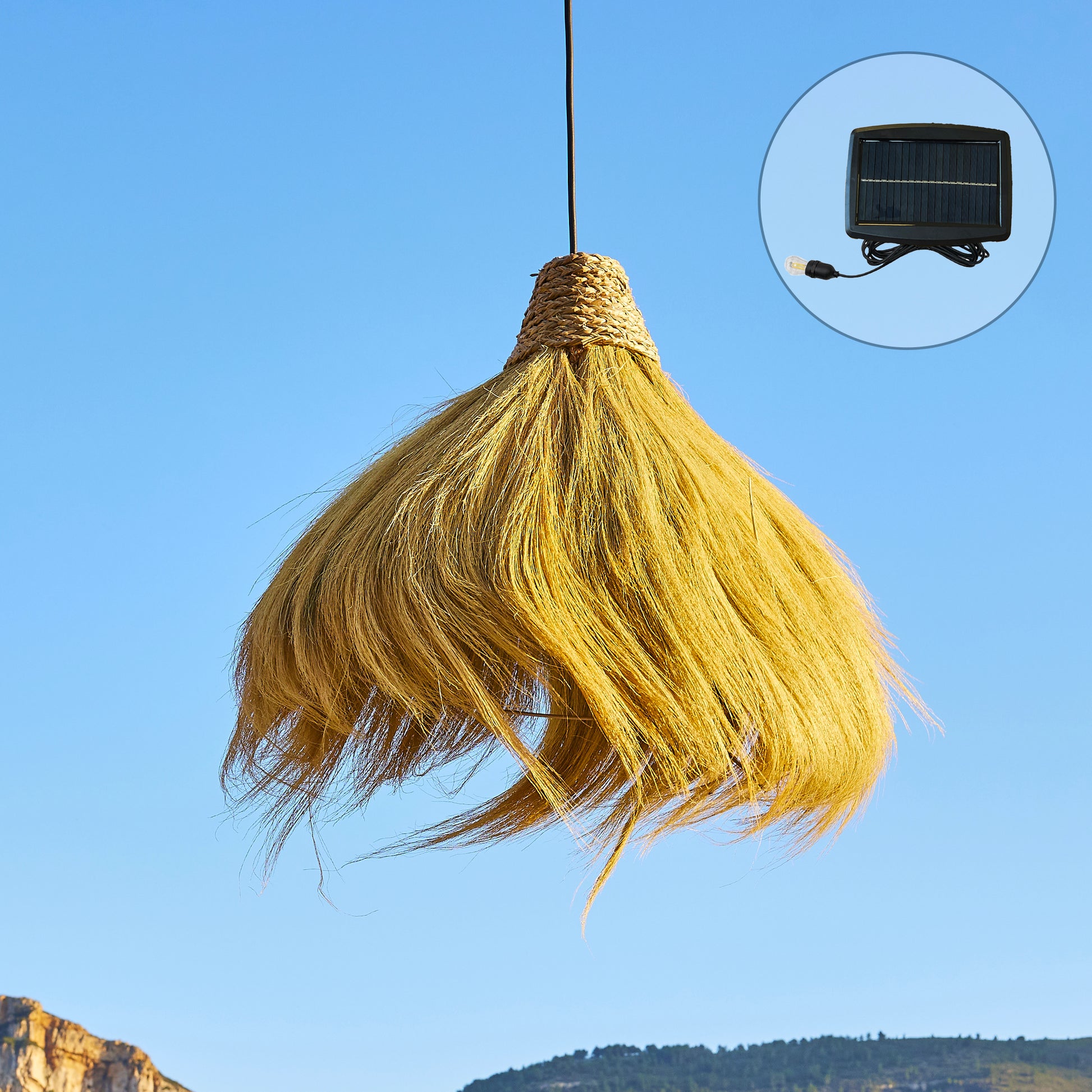 Suspension solaire MASAI SOLAR en herbe de rayung avec câble hybride secteur et solaire 5m de longueur