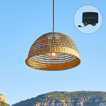 La suspension solaire CESARE SOLAR 5m de longueur (Dimensions : ø38 x H19cm), est une création artisanale en rotin naturel. Elle diffuse une lumière LED blanc chaud et apporte une touche exotique et chaleureuse à votre décoration. Son tressage unique et son style ethnique chic s'intègrent à merveille dans les ambiances modernes, bohèmes ou vintage. La CESARE SOLAR est fournie avec son câble d'extérieur hybride ENNA SOLAR, doté d'une ampoule LED intégrée et remplaçable. Ce système vous offre la liberté de choix : Par recharge solaire ou secteur 220-240V. L'ampoule offre une puissance lumineuse de 600 lumens et une lumière blanc chaud. De plus, elle est dimmable et propose 4 niveaux d'intensité pour s'adapter parfaitement à l'ambiance souhaitée. Profitez de vos soirées en toute tranquillité. La suspension CESARE SOLAR bénéficie d'une autonomie exceptionnelle de près de 8 heures une fois chargée au maximum (que ce soit par énergie solaire ou via secteur). Le temps de charge complet est de 6 à 8 heures via solaire. Un voyant de niveau de batterie intégré vous permet de vérifier facilement l'énergie restante. Grâce à sa conception sans fil et son système de recharge hybride, la CESARE SOLAR est idéale partout : sur votre terrasse, votre balcon, ou dans votre salon. Le rotin est un matériau résistant et durable. Conseil d'entretien : Pour préserver l'abat-jour, il est recommandé de le suspendre à l'abri de l'humidité et de la pluie.