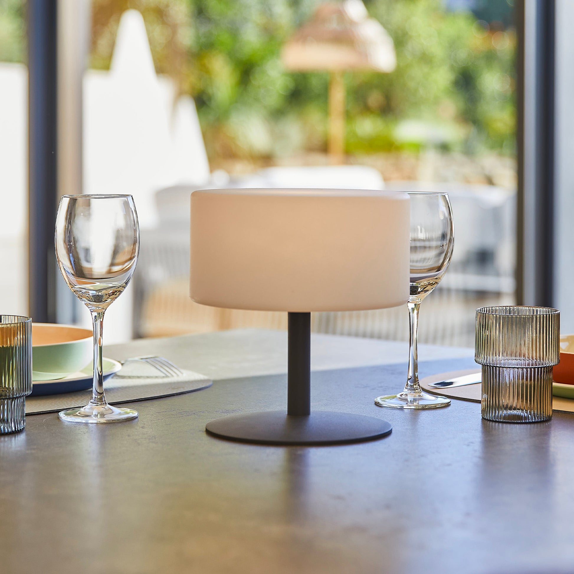 Lampe de table sans fil pied en acier gris LED blanc chaud/blanc dimmable ATLAS Rock H20cm