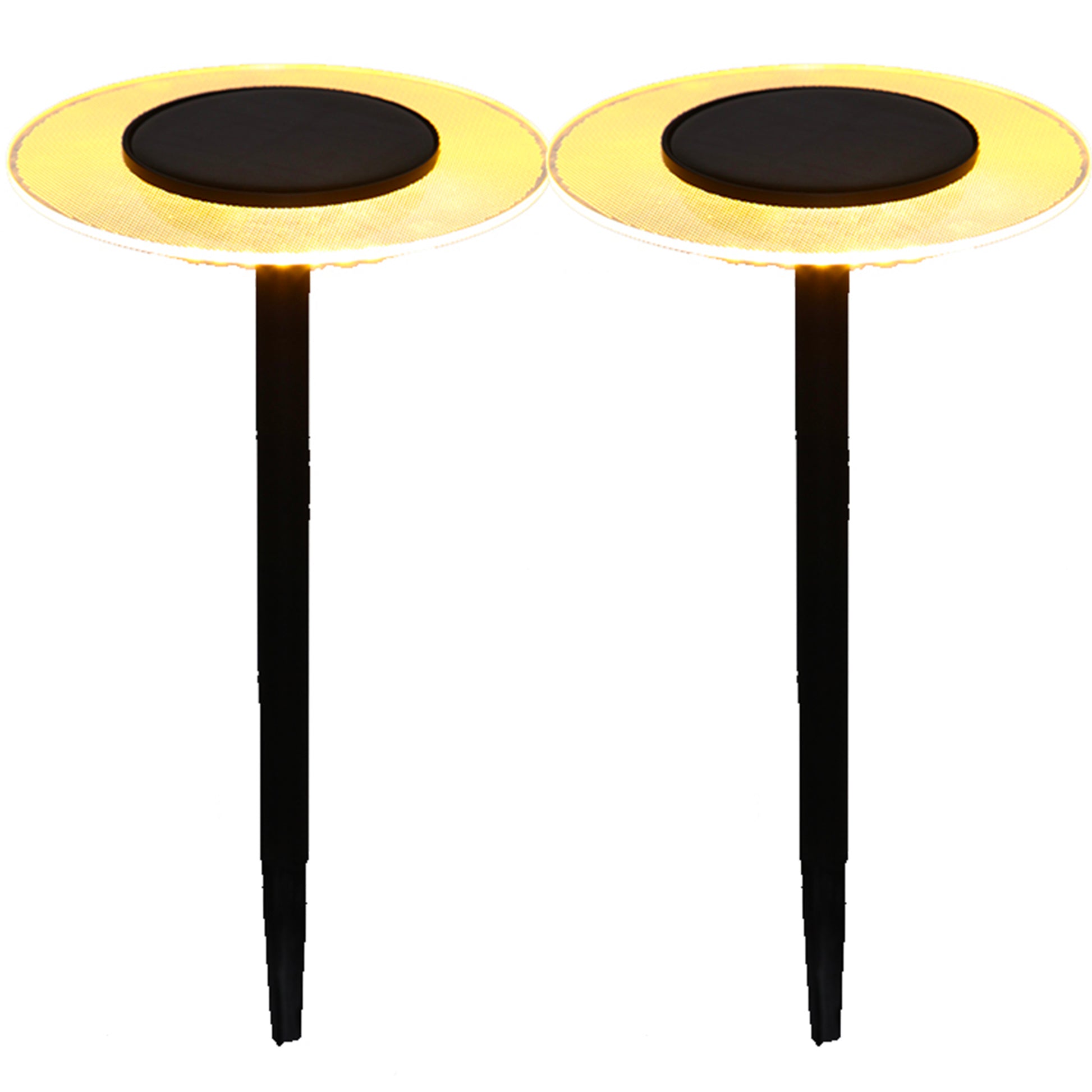Lot de 2 balises solaires à piquer LED blanc chaud UFO H35cm