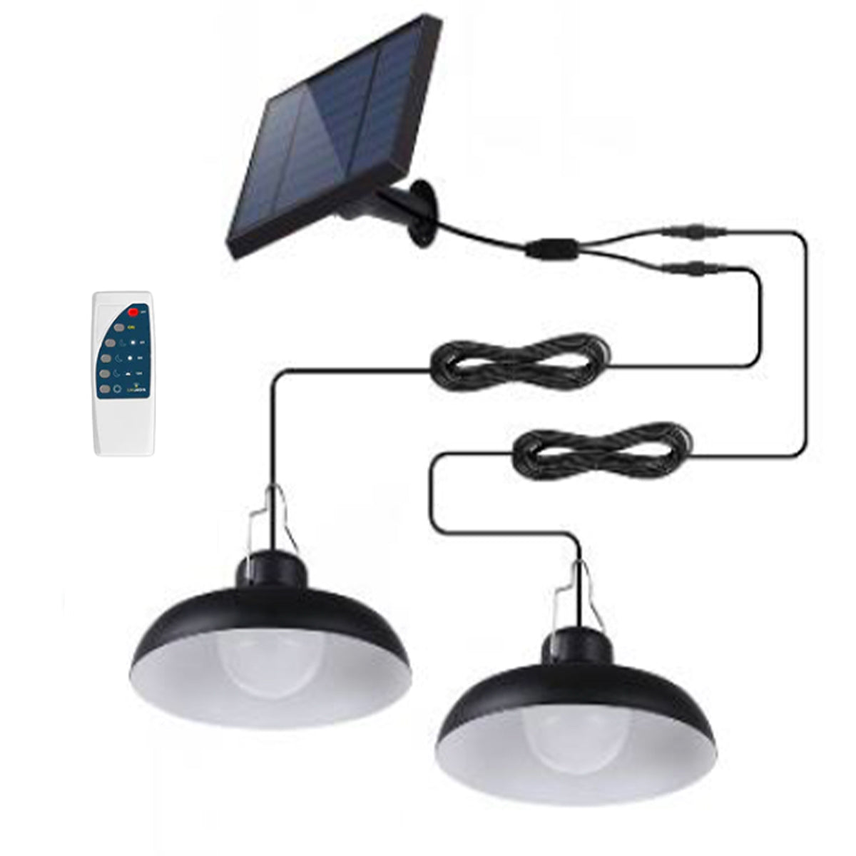 Double suspensions solaires abat-jour métal noir LED blanc froid éclairage puissant 2x WAREN D18cm Cable 5m avec télécommande