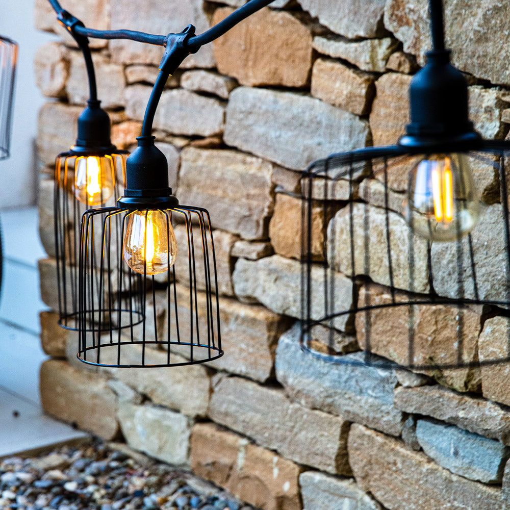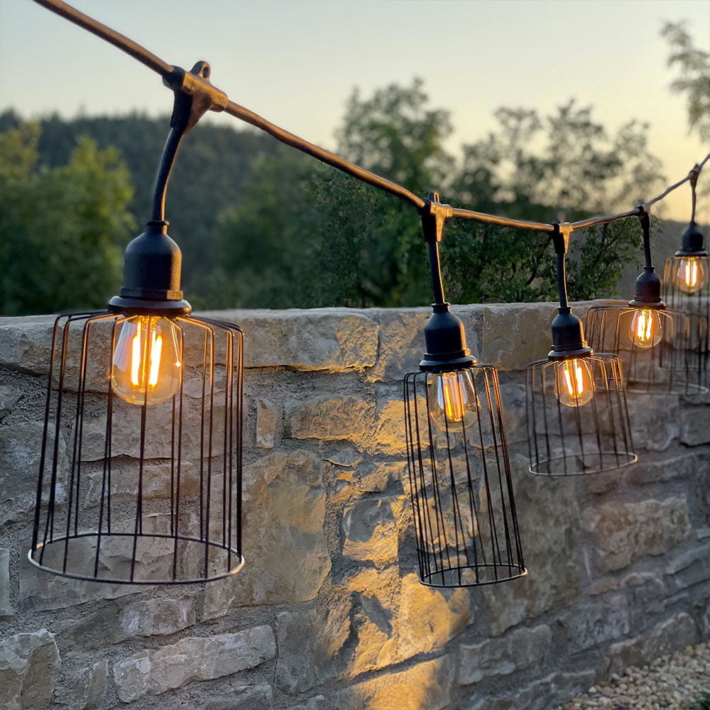 - GUIRLANDE LUMINEUSE E27 : Nema Light est une guirlande lumineuse à ampoules E27 à filament qui disposent de petits passants pour pouvoir la suspendre à votre gré. Cette guirlande lumineuse LED avec abat-jour effet cage en acier se distingue par son design à la fois rétro et tendance. Elle est idéale pour faire briller vos soirées et vous allez adorer son côté design et vintage pour illuminer vos plus beaux événements.