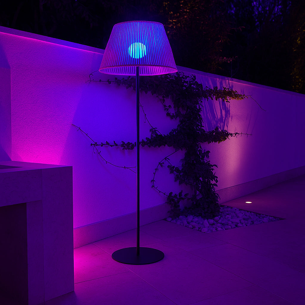 - LAMPADAIRE SANS FIL : TALL RAFFY allie élégamment des matériaux tels que le bois et le métal, avec sa lampe nomade LYS équipée d'un aimant pour se fixer directement sur la surface métallique de l'abat-jour. Cette lampe offre une luminosité ajustable, allant du blanc chaud aux nuances multicolores, vous permettant de personnaliser votre éclairage à tout moment. L'abat-jour en corde naturelle ainsi que le pied en métal vous offre une qualité optimale et une durée dans le temps. Le pied en métal de TALL RAFFY dispose d'une stabilité renforcée lui permettant de résister aux intempéries.