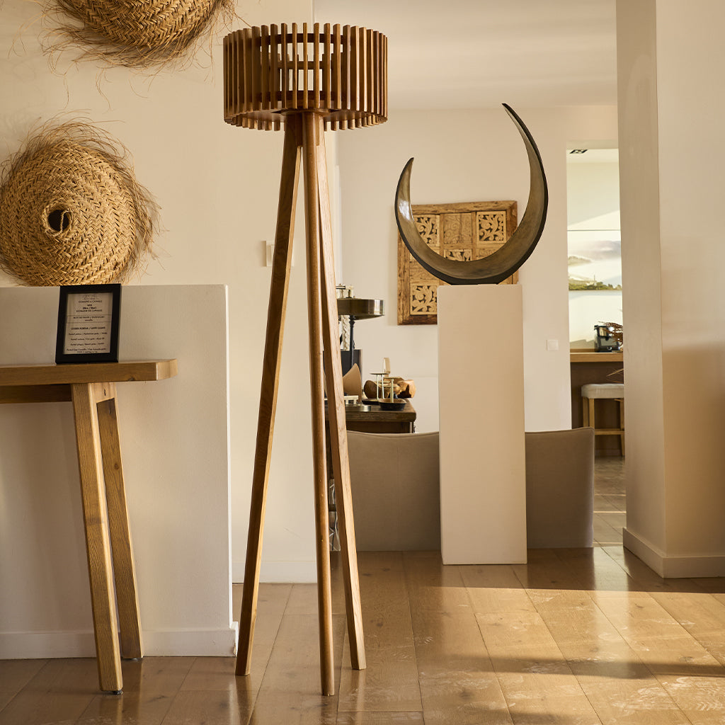 Apportez une touche design et naturelle à votre extérieur avec le Lampadaire Solaire EDEN TALL. Ce grand lampadaire trépied de 158 cm de hauteur est fabriqué en bois de teck d'Indonésie (Diamètre 40cm), faisant de lui une pièce décorative haut de gamme, robuste et élégante, aussi remarquable de jour que de nuit. Éclairage Modulable et Contrôlé à Distance :Le lampadaire est vendu avec notre module LED solaire SUNNY ROUND et sa télécommande. Ce module diffuse un agréable éclairage blanc chaud avec un variateur d'intensité intégré, vous permettant de choisir l'ambiance désirée : Mode 1 (30%) : 90 Lumens (Jusqu'à 16 heures d'autonomie). Mode 2 (60%) : 180 Lumens (Jusqu'à 10 heures d'autonomie). Mode 3 (100%) : 300 Lumens (Jusqu'à 8 heures d'autonomie). Autonomie Record et Double Recharge Hybride : Le module SUNNY ROUND assure une performance durable : Jusqu'à 16 heures d'autonomie en mode faible (90 lm). Il peut être rechargé via l'énergie solaire (8h) ou via le câble fourni (5h), garantissant un éclairage fiable, même par temps nuageux. La base inclut un mode "Daylight" pour un allumage automatique subtil avant l'obscurité complète. Design Exceptionnel : Le Lampadaire Trépied Solaire EDEN TALL est idéal pour structurer les grands espaces de votre terrasse ou jardin. Son design unique et sa fabrication en teck d'Indonésie garantissent une mise en valeur esthétique de vos extérieurs.