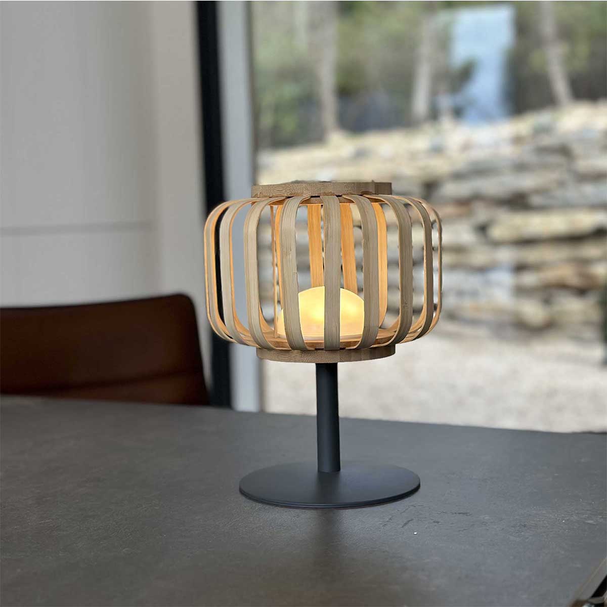 Lampe de table sans fil en bambou naturel LED blanc chaud/blanc dimmable STANDY MINI BAMBOU H25cm
