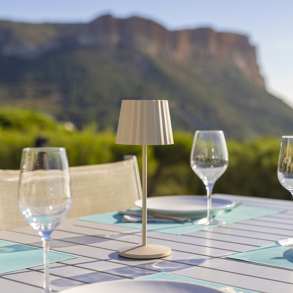 LAMPE DE TABLE LED : ABBY CREAM est une lampe de table LED sans fil avec une base LED blanc chaud à intensité variable. Cette lampe à poser se distingue par son design fin et élégant. Lampe à poser autonome, elle apportera à votre décoration une touche chic et tendance. Elle est idéale comme lampe de table design, lampe de chevet ou encore pour illuminer vos tables de fêtes.