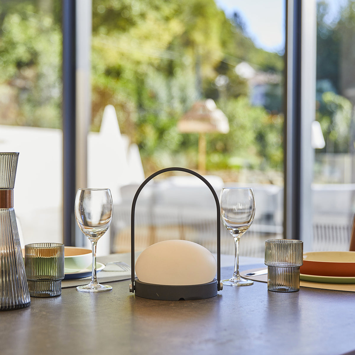 - LAMPE DE TABLE LED : Day est une lampe sans fil, LED blanc chaud / blanc froid avec intensité variable. Grâce à sa poignée en métal, la lampe peut être suspendue, posée, ou baladée. Elle dispose d'une autonomie de fonctionnement de 10 heures. Lampe à poser autonome, elle apportera à votre décoration une touche tendance et originale. Elle est idéale comme lampe de table design, lampe de chevet, veilleuse ou encore pour illuminer les tables de fêtes. À vous de choisir !