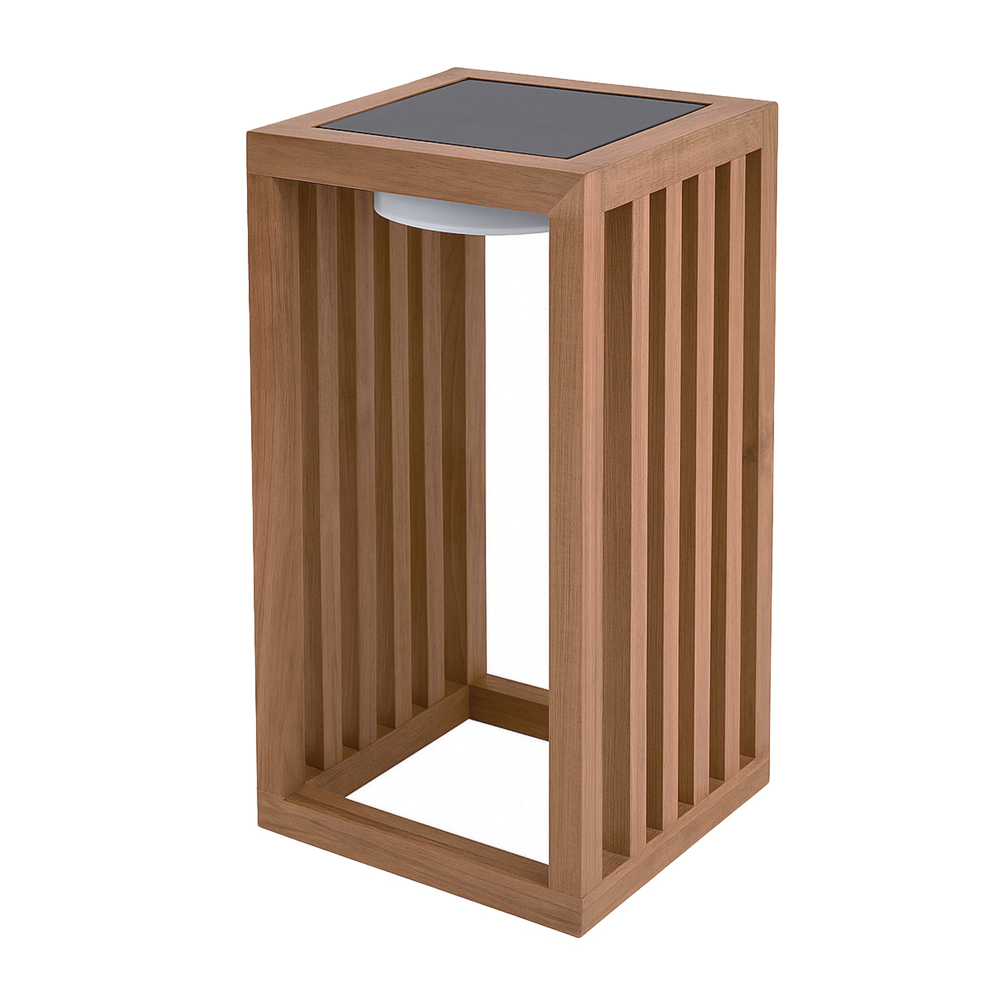 Lanterne solaire décorative LED blanc chaud CHENNAI en bois teck massif H30cm
