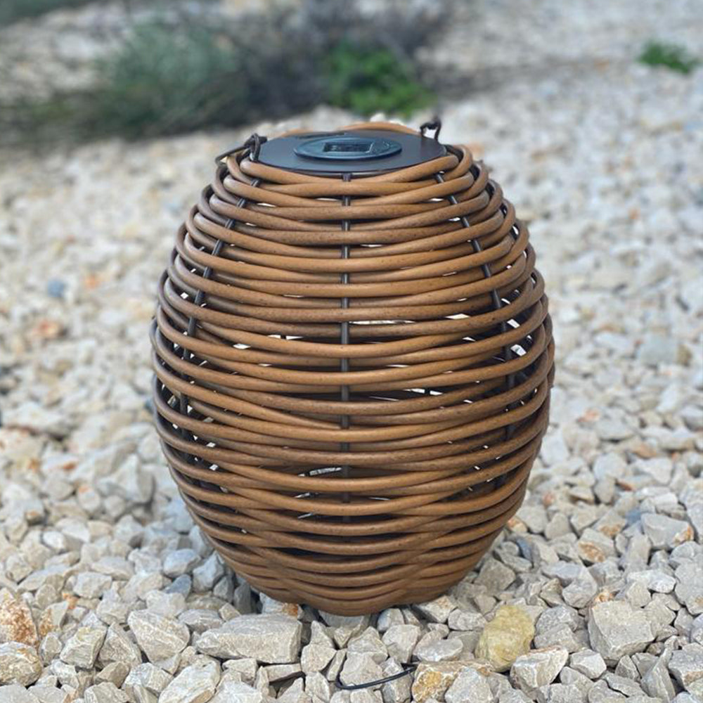 Lanterne solaire polyrotin poignée métal LED blanc chaud RAFFY SOLAR H33cm