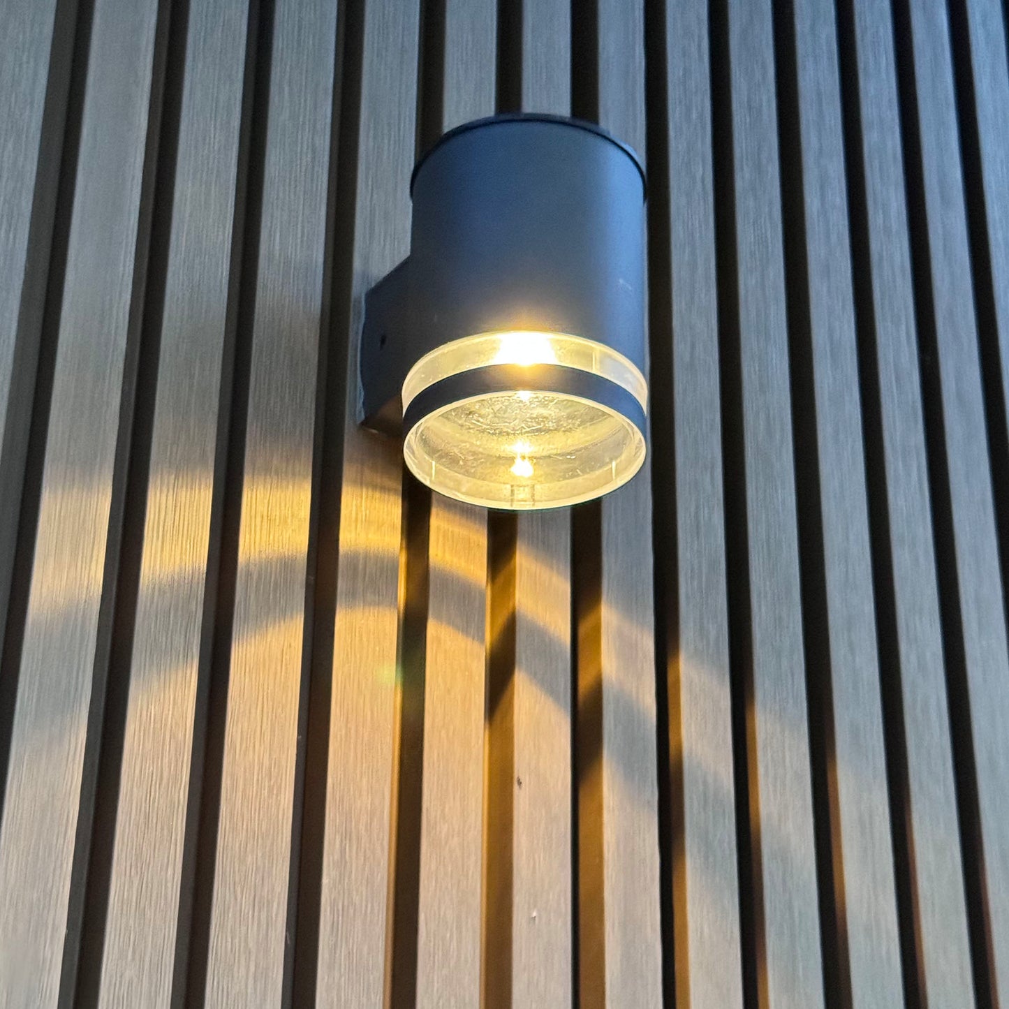 Lot de 2 Appliques Murales Solaires Gris Foncé HELIO - Design Cylindrique Moderne, LED à Lumière Blanc Chaud, Étanches et Idéales pour Jardin, Terrasse et Extérieur