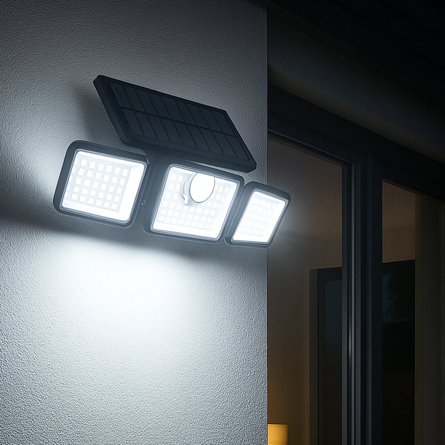 - Éclairage Puissant et Haute Performance : Le lot de 2 projecteurs solaires 2X GLEAMAX à 3 têtes utilise un panneau solaire intégré qui collecte l'énergie solaire tout au long de la journée. Équipé de 252 LEDs ultra-lumineuses, il offre un éclairage à 270 degrés, bien plus large que les spots classiques qui éclairent à 90 degrés. Le projecteur solaire GLEAMAX est orientable horizontalement. Avec une luminosité pouvant atteindre 700 lumens, ce projecteur solaire garantit un éclairage puissant et efficace dès la tombée de la nuit et en cas de détection de mouvement, idéal pour éclairer les entrées de garage, les allées de jardin et les passages sombres.
