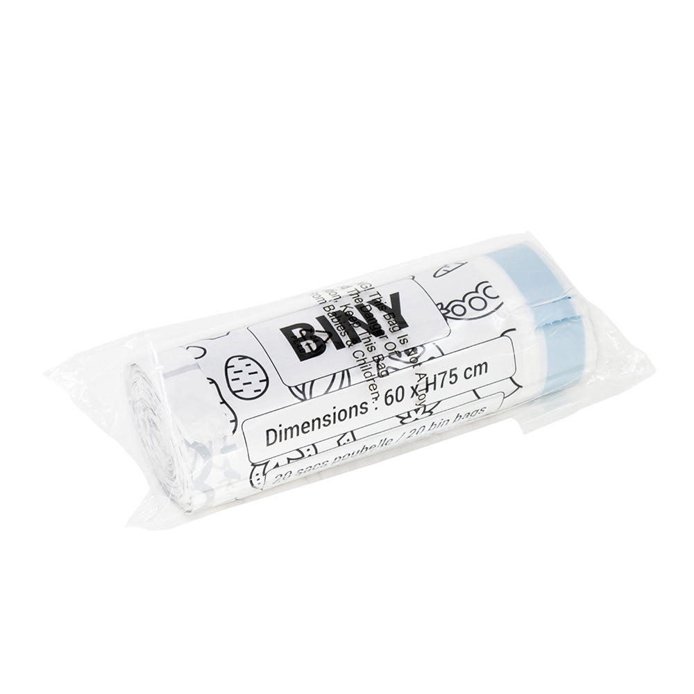 Lot de 20 sacs poubelles blanc 50L 60 x H75 CM BINY Ultra résistant 23 microns avec lien coulissant
