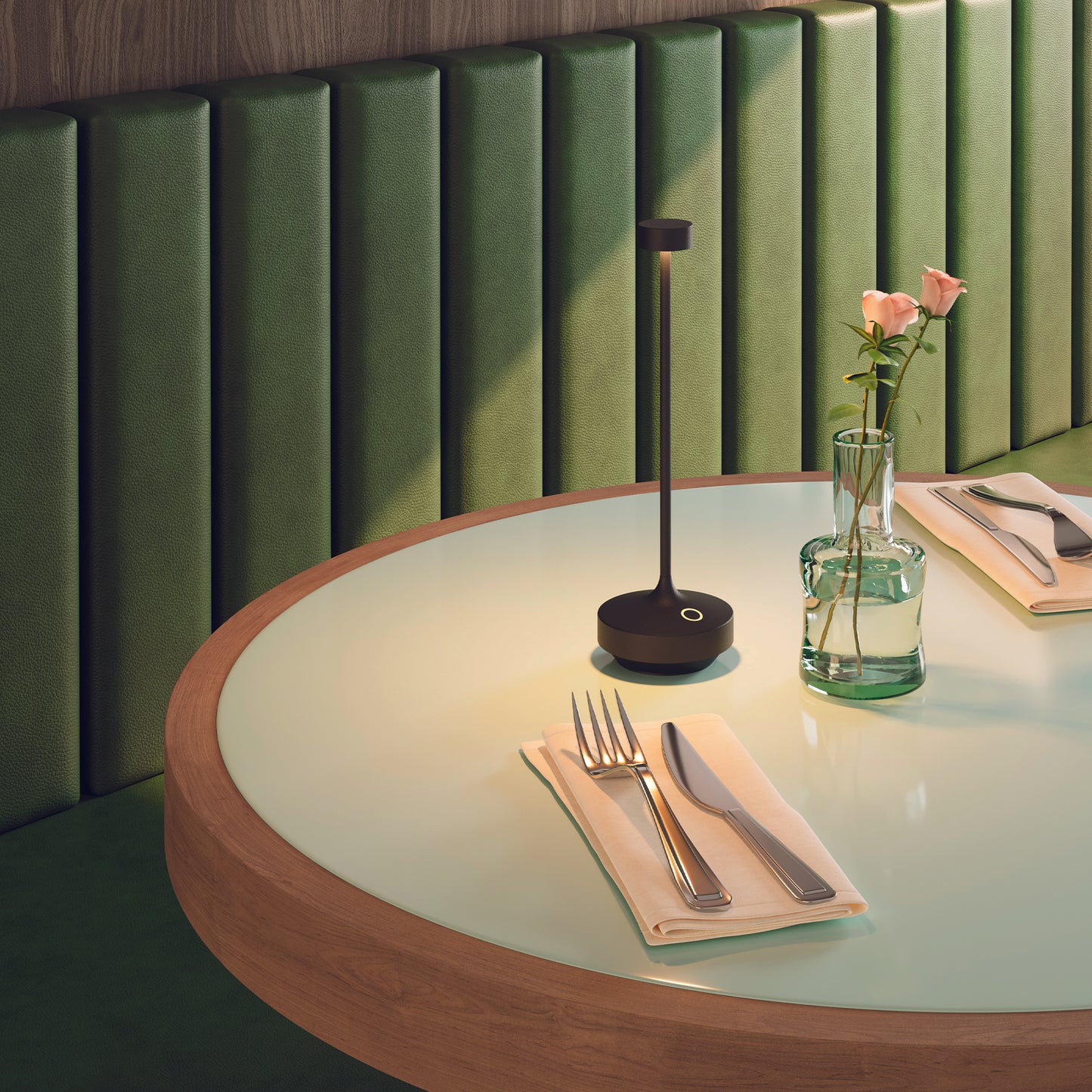 AVEC PLATEAU DE CHARGEMENT x6. LAMPE DE TABLE LED : La lampe de table RUBY BLACK sans fil avec une base LED blanc chaud à intensité variable. Cette lampe à poser se distingue par son design fin et élégant. Lampe à poser autonome, elle apportera à votre décoration une touche chic et tendance. Elle est idéale comme lampe de table design, lampe de chevet ou encore pour illuminer vos tables de fêtes.