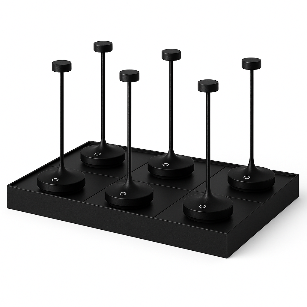 Lot de 6 Lampe de table sans fil LED blanc chaud dimmable RUBY BLACK H25cm Noir avec plateau de chargement