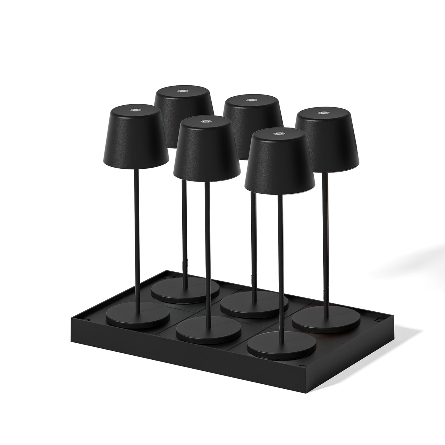 Lot de 6 lampes de table touch sans fil en aluminium KELLY BLACK LED blanc dimmable H38 cm avec plateau de chargement