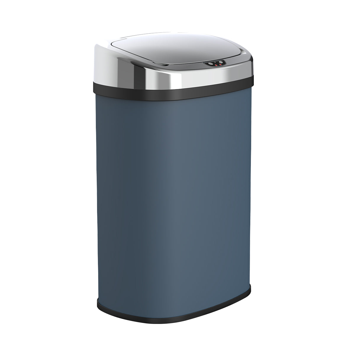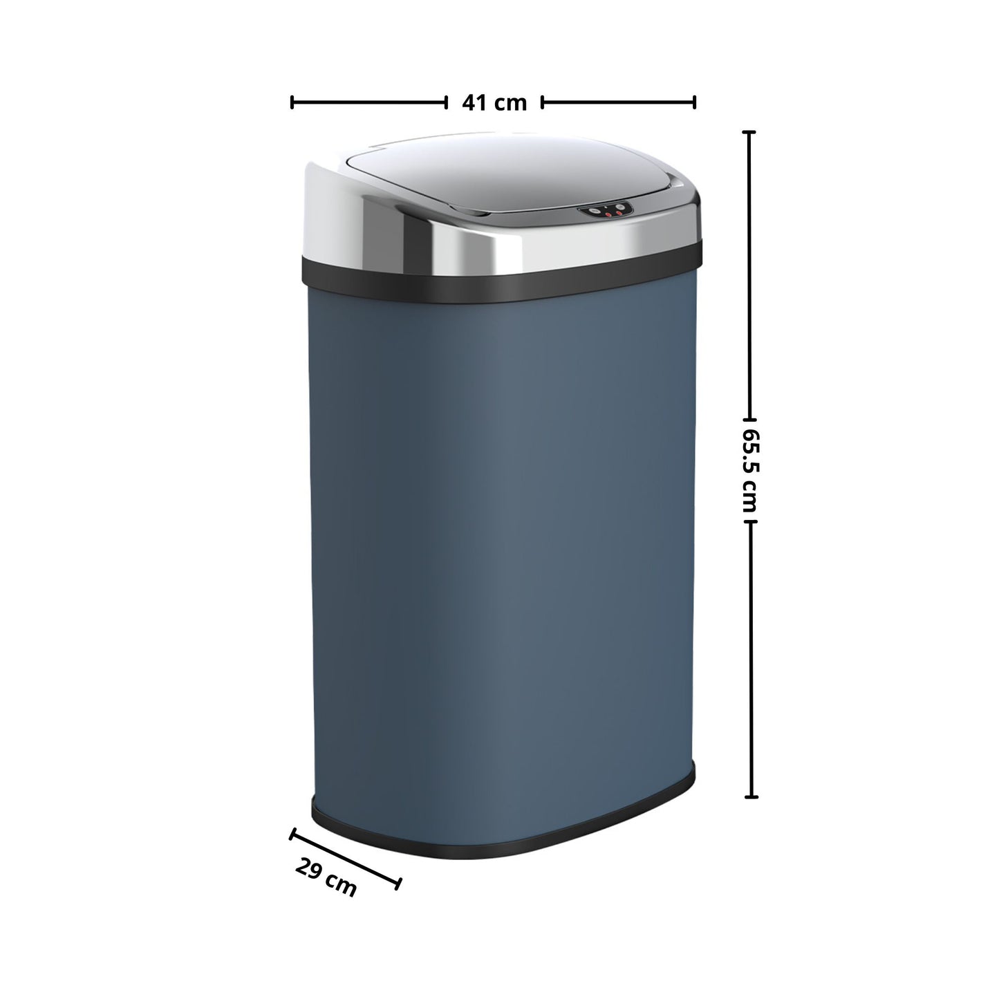 La poubelle automatique MAJESTIC 58 L Gris et Inox de Kitchen Move associe élégance contemporaine et praticité. Sa cuve en acier inoxydable gris mat et son couvercle inox brillant lui confèrent un style moderne, idéal pour toutes les cuisines. Son capteur infrarouge intégré permet une ouverture automatique sans contact à environ 15 cm de distance pour un usage hygiénique et pratique. Elle fonctionne avec 4 piles D (non incluses) ou via port USB-C (câble non fourni), offrant ainsi deux options d’alimentation. Le cerclage intérieur maintient le sac poubelle, tandis que la base antidérapante et l’anneau de protection assurent une stabilité parfaite. Sa fermeture silencieuse, son inox anti-traces et son entretien facile en font un accessoire de cuisine aussi esthétique que fonctionnel. Dimensions : 40,9 × 29 × 65,5 cm.