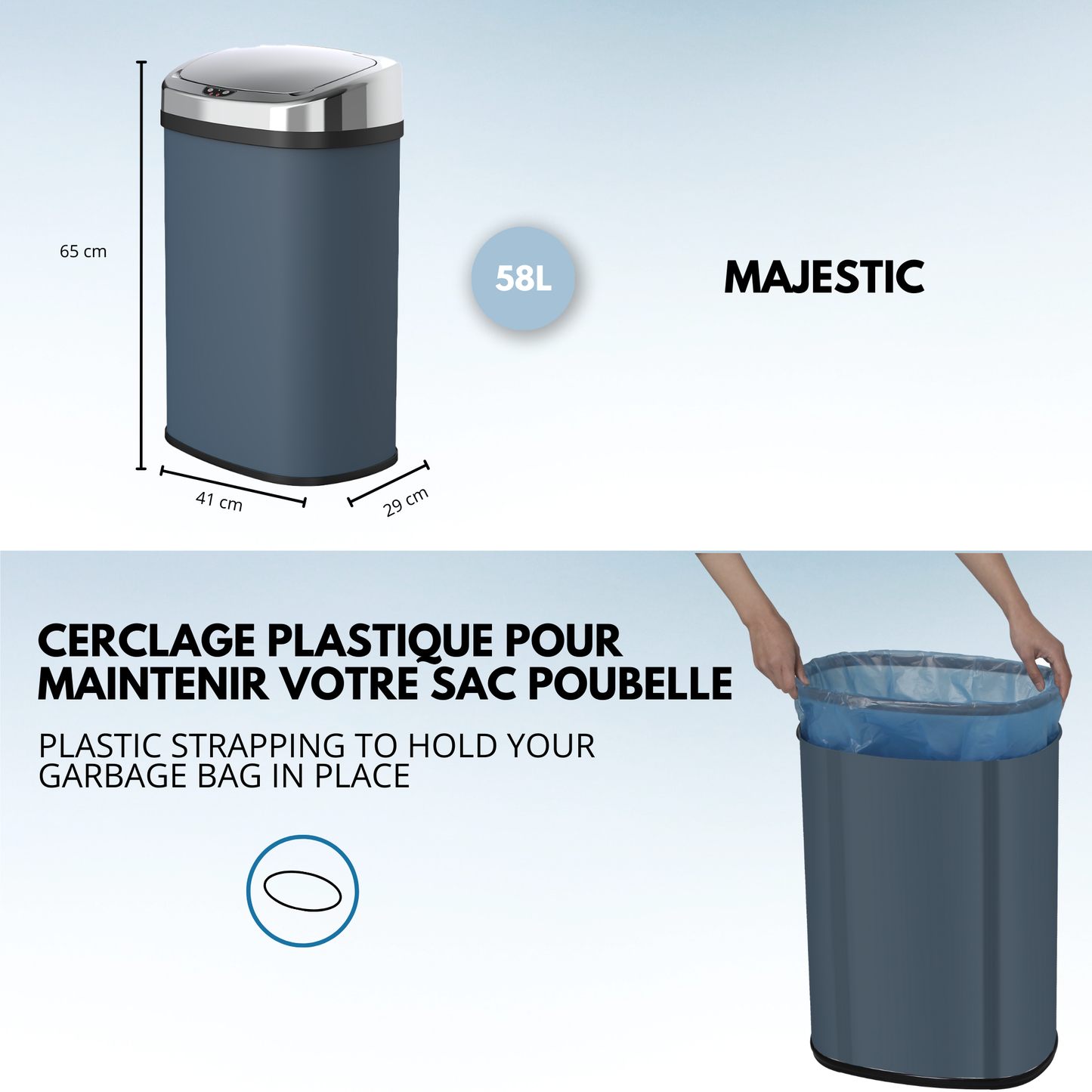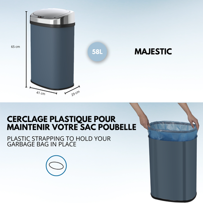 Poubelle de cuisine automatique 58L MAJESTIC grande capacité gris mat en acier INOX avec cerclage