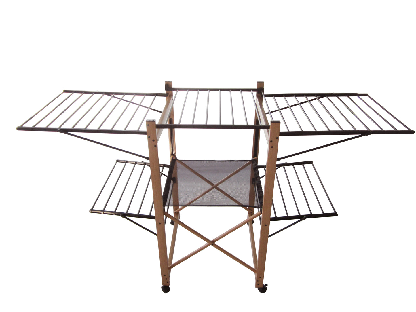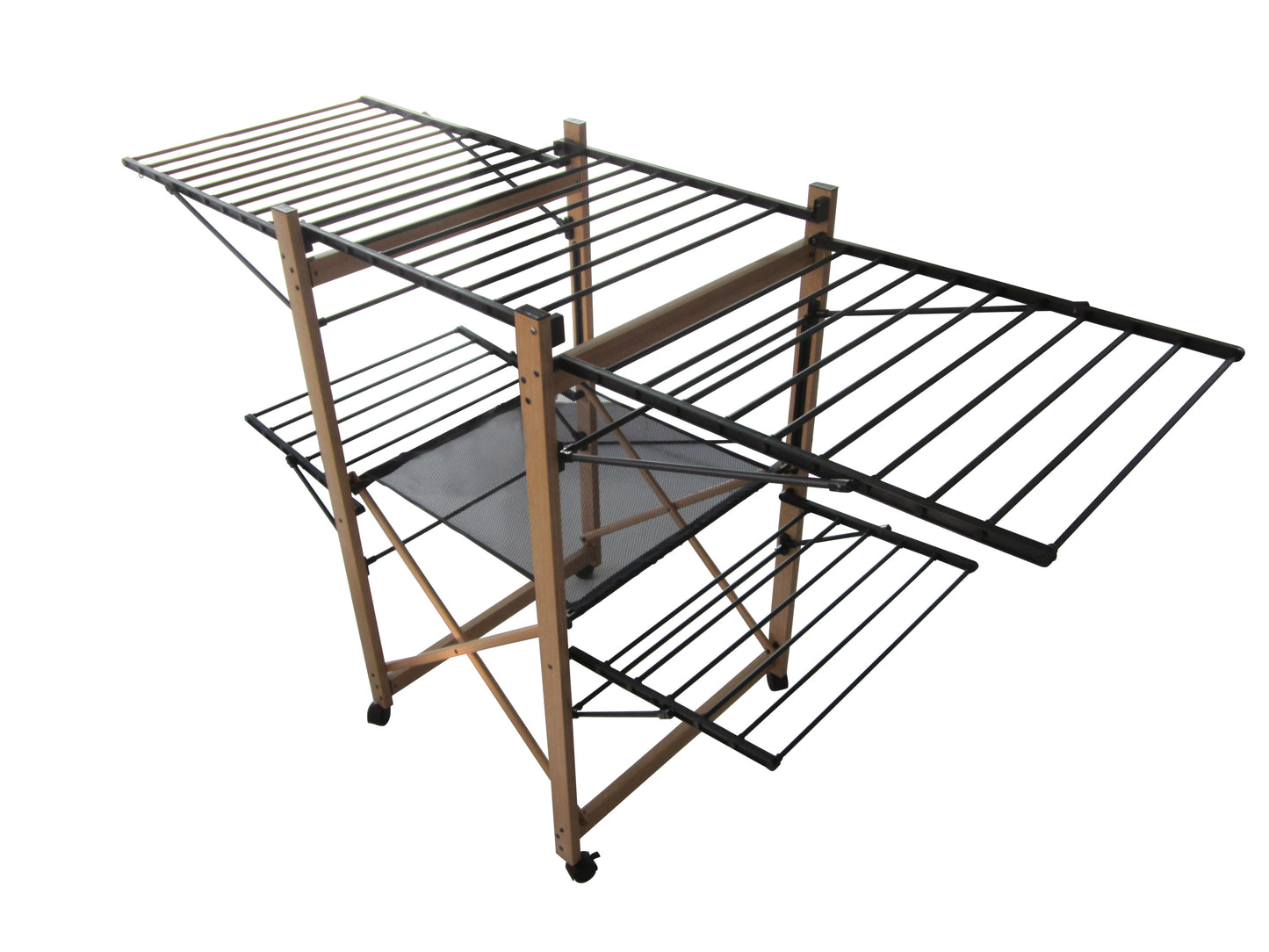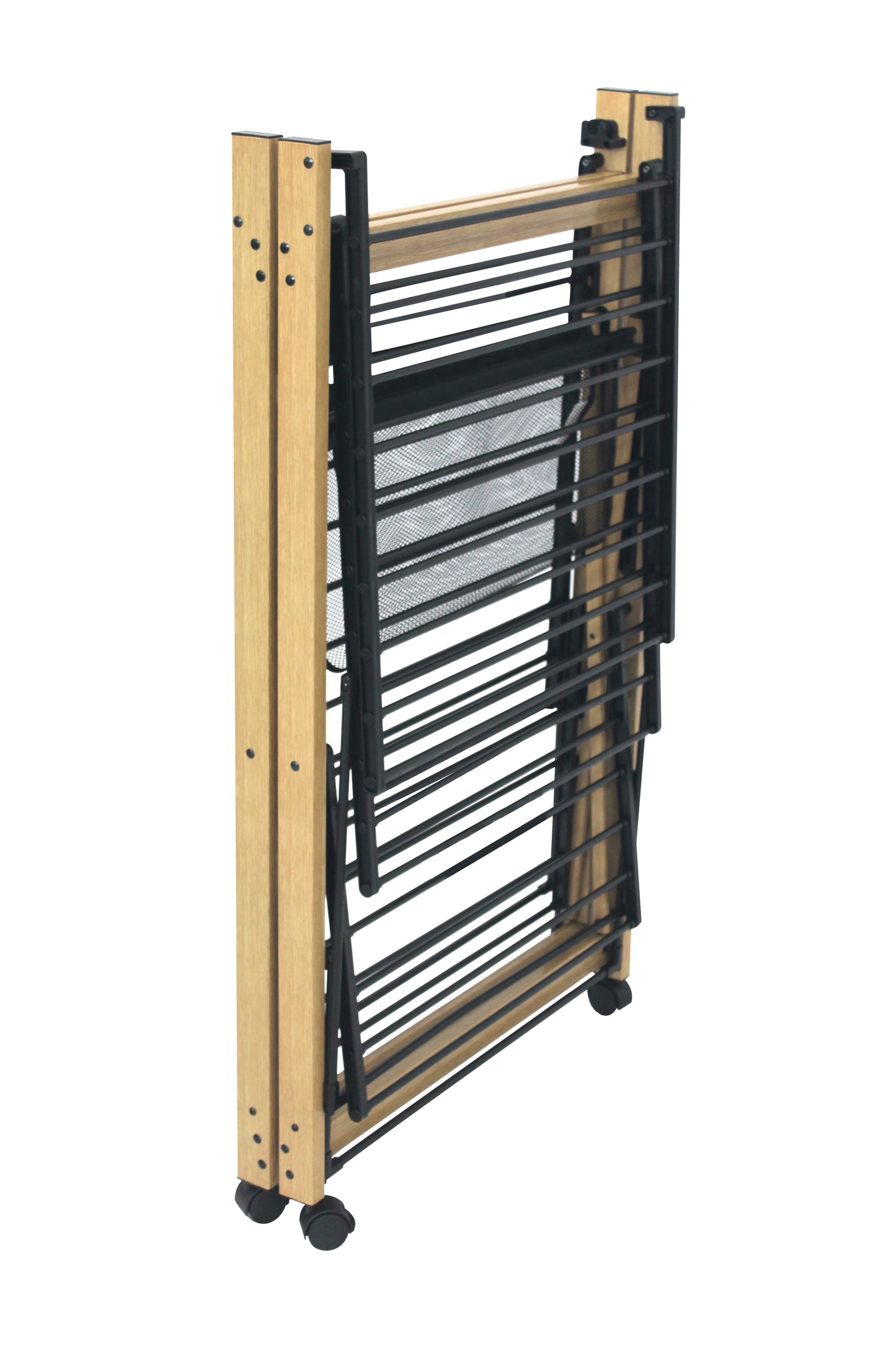 Séchoir à linge étendoir multifonction Grande Capacité avec roulettes 28M USHUAIA BLACK Couleur bois et noir avec Maille Etendoir