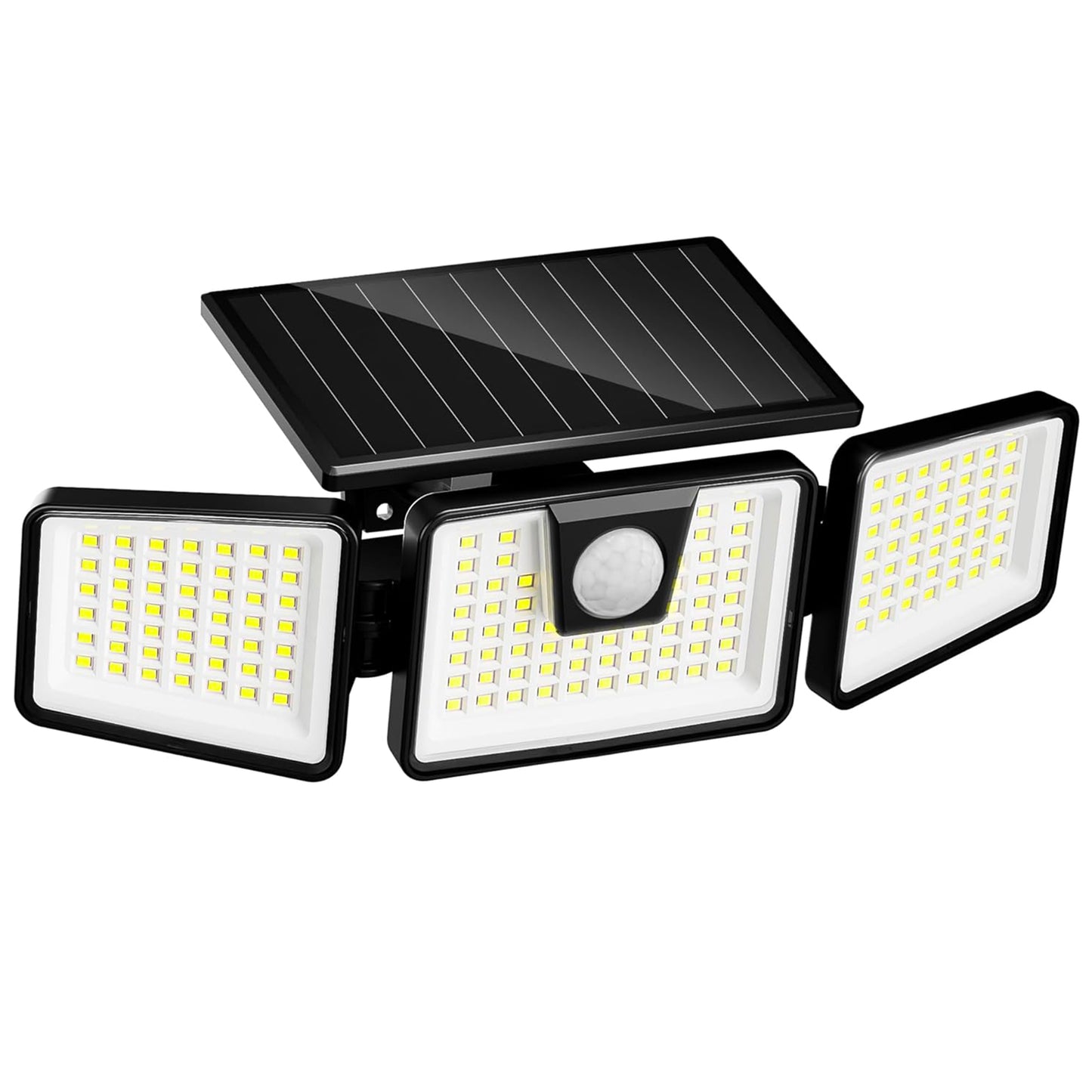- ÉCLAIRAGE PUISSANT HAUTE PERFORMANCE :Le spot mural FALCON à 3 têtes fonctionne grâce à son panneau solaire intégré qui collecte l'énergie du soleil tout au long de la journée. Ses 3 têtes possèdent 128 LED ultra lumineuses qui permettent un éclairage à 270°C contrairement à un spot classique qui éclaire à 90°C. Le spot solaire FALCON est orientable verticalement et horizontalement. Avec des LED fournissant jusqu'à 1000 Lumens, ce projecteur solaire vous offrira un éclairage super puissant et lumineux une fois la nuit tombée et en cas de mouvement dans sa zone de détection. Il est idéal pour éclairer l'entrée d'un garage ou d'une maison, l'allée d'un jardin, des passages sombres.